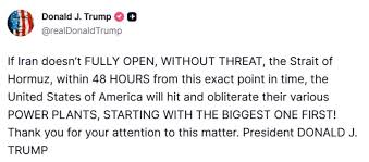 Iran’s military command has responded to Trump’s threat, saying it will strike regional energy infrastructure and desalination plants if the U.S. targets Iranian power plants.